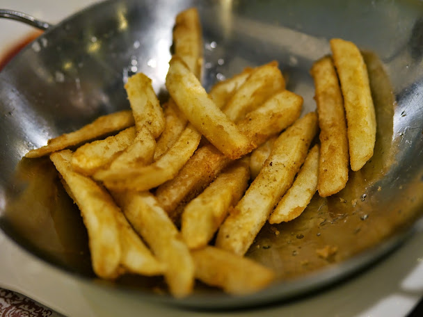 招待小菜,麵糊包覆著海苔絲油炸過,變成小巧的即食品。帶點鹹甜辣,上頭大方灑著白芝麻,香味十足,酥脆好入口。
